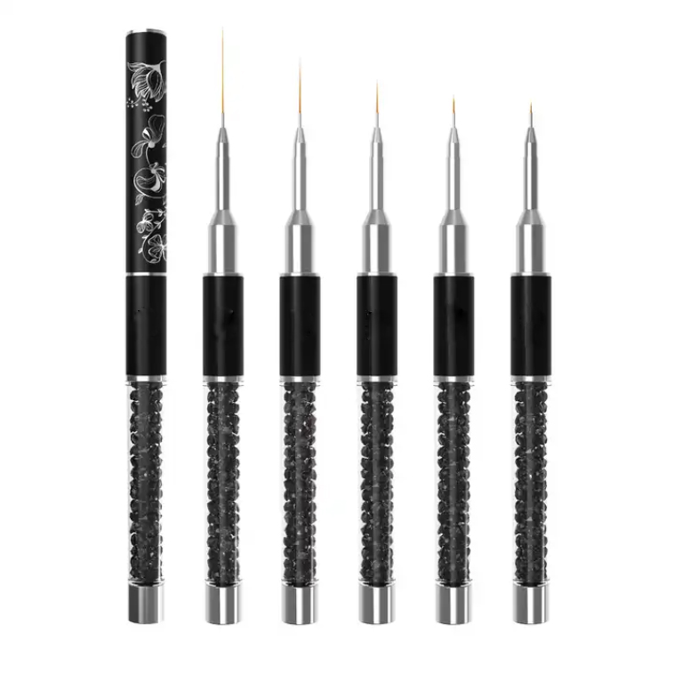 Black & Rose Gold Professional Nail Art Brush Set – 6 pcs Acrylic, Gel, Detail & Liner Brushes | Salon & OEM Wholesale