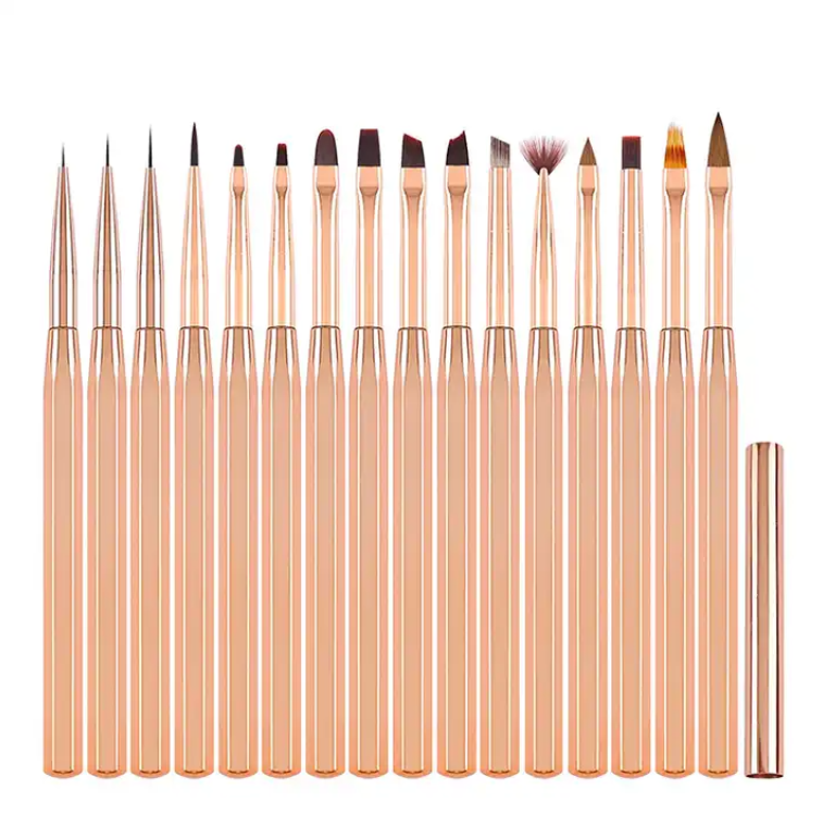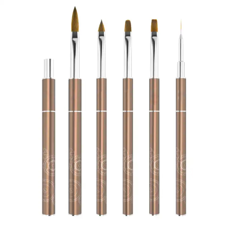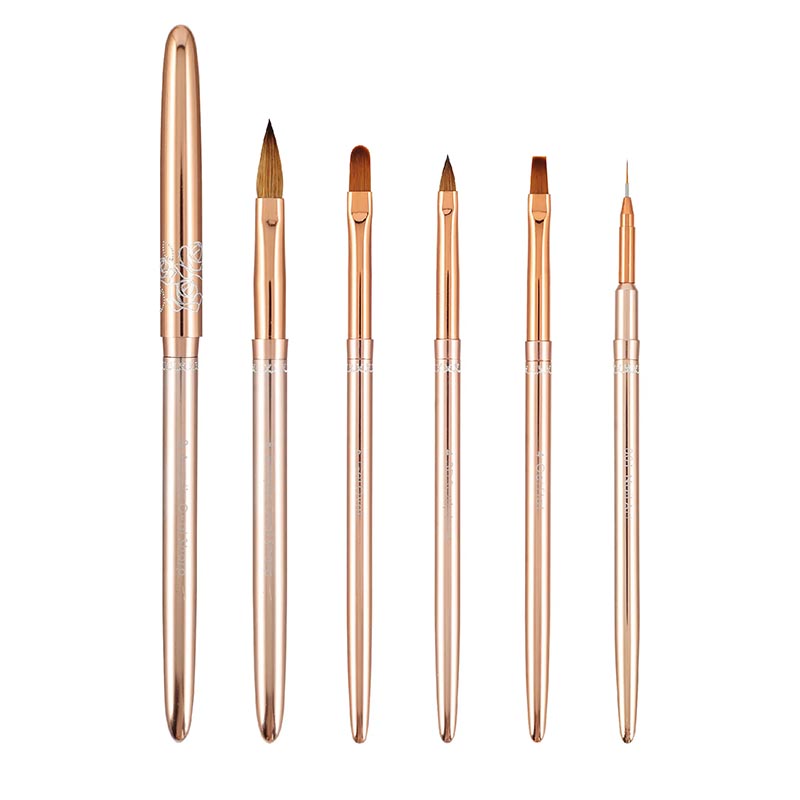 Rose Gold Professional Nail Art Brush Set – Acrylic, Gel, Detail & Liner Brushes for Salon & Nail Technicians (6 pcs)
