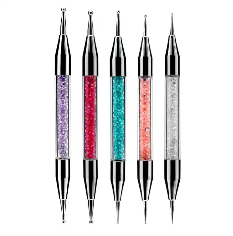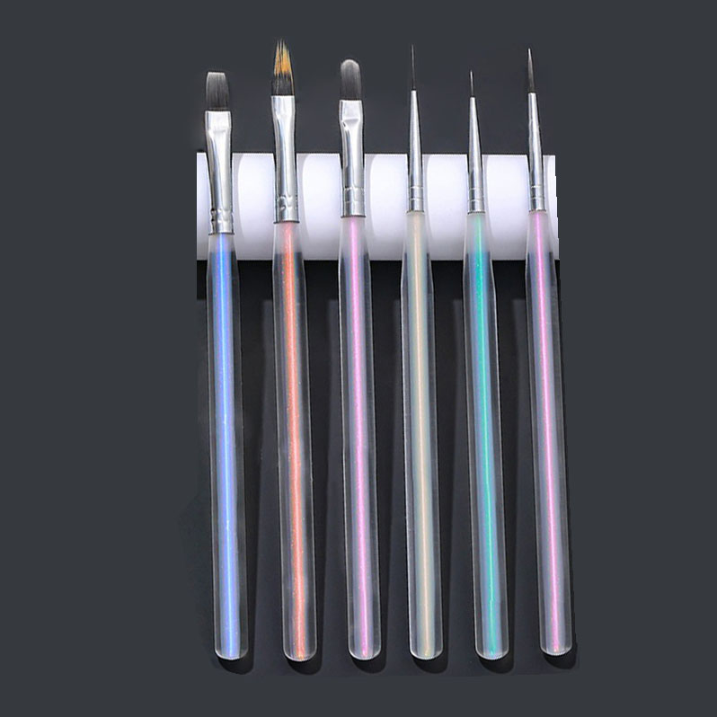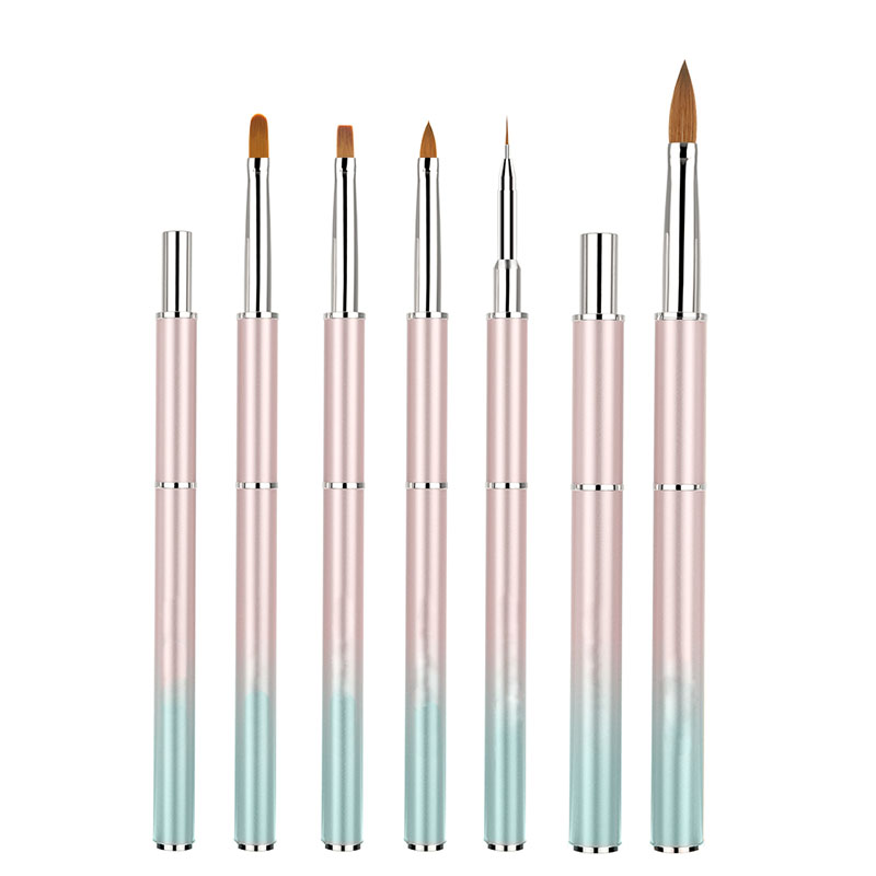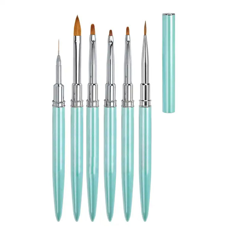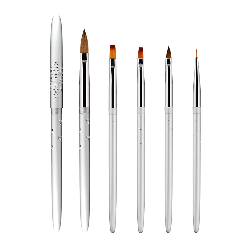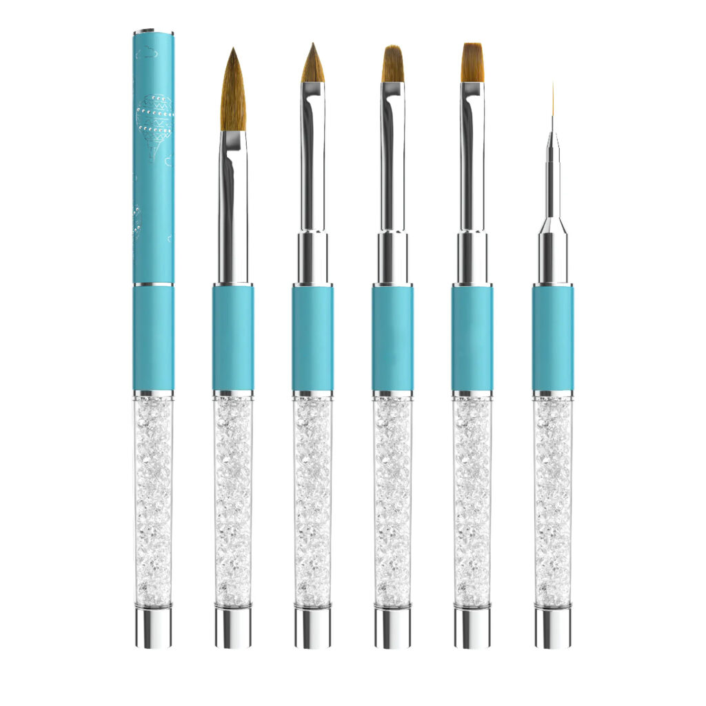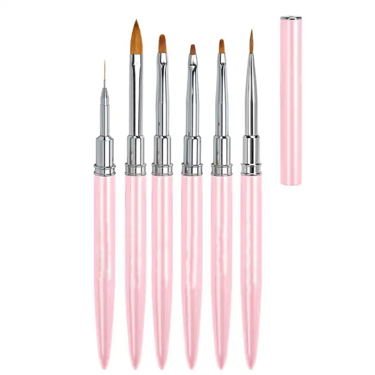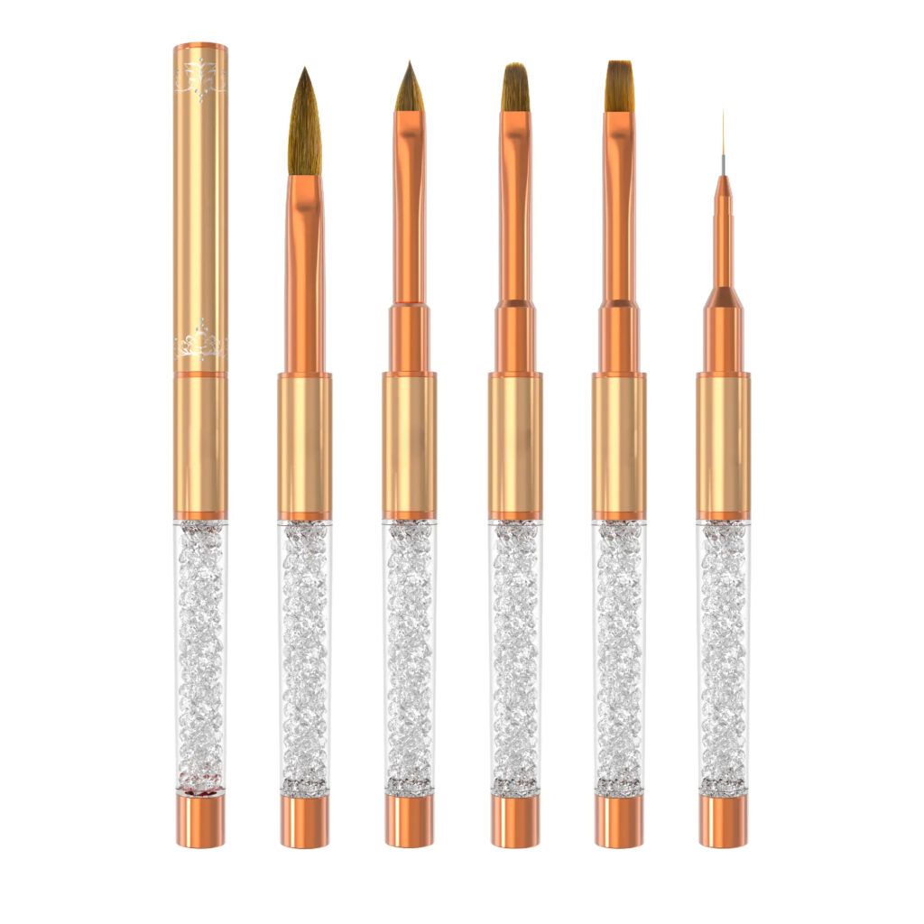 6 Pcs Pink Crystal Nail Art Brush Set with Cap – Acrylic & Gel Nail Brushes for Professional Salon Use