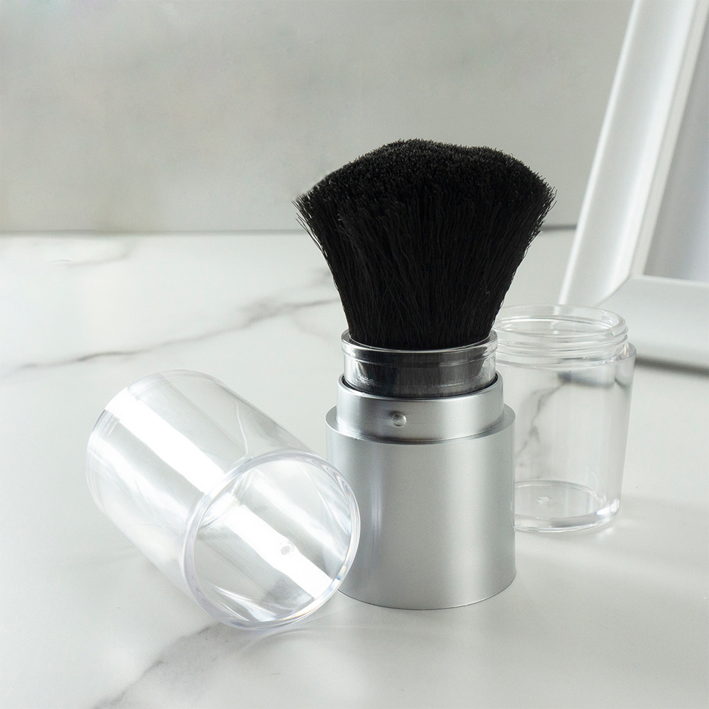 Custom Refillable Loose Powder Brush with Clear Container | Portable Mineral Makeup Brush with Black Bristles