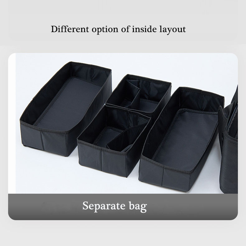 Customizable interior layout fits different product sizes—foundations, palettes, skincare bottles, etc.